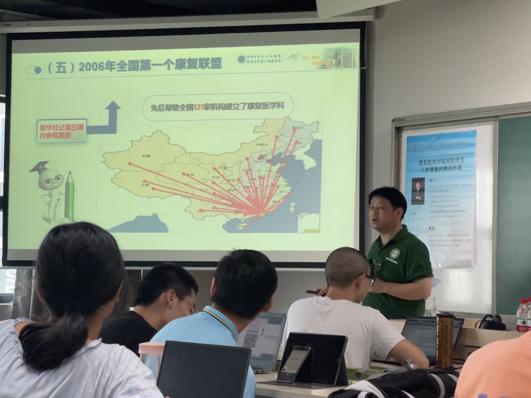 講堂中,王主任介紹了康復醫學作為第四醫學,可以減少臨床并發癥,促進功能恢復,提高患者的生活質量;臨床醫學在康復醫學的協作下,可以縮短住院時間,大幅度減少醫療支出,節約資源。同時,王主任與師生分享了自己多年來的臨床康復經歷,進一步拓展了同學們對康復領域的認知。