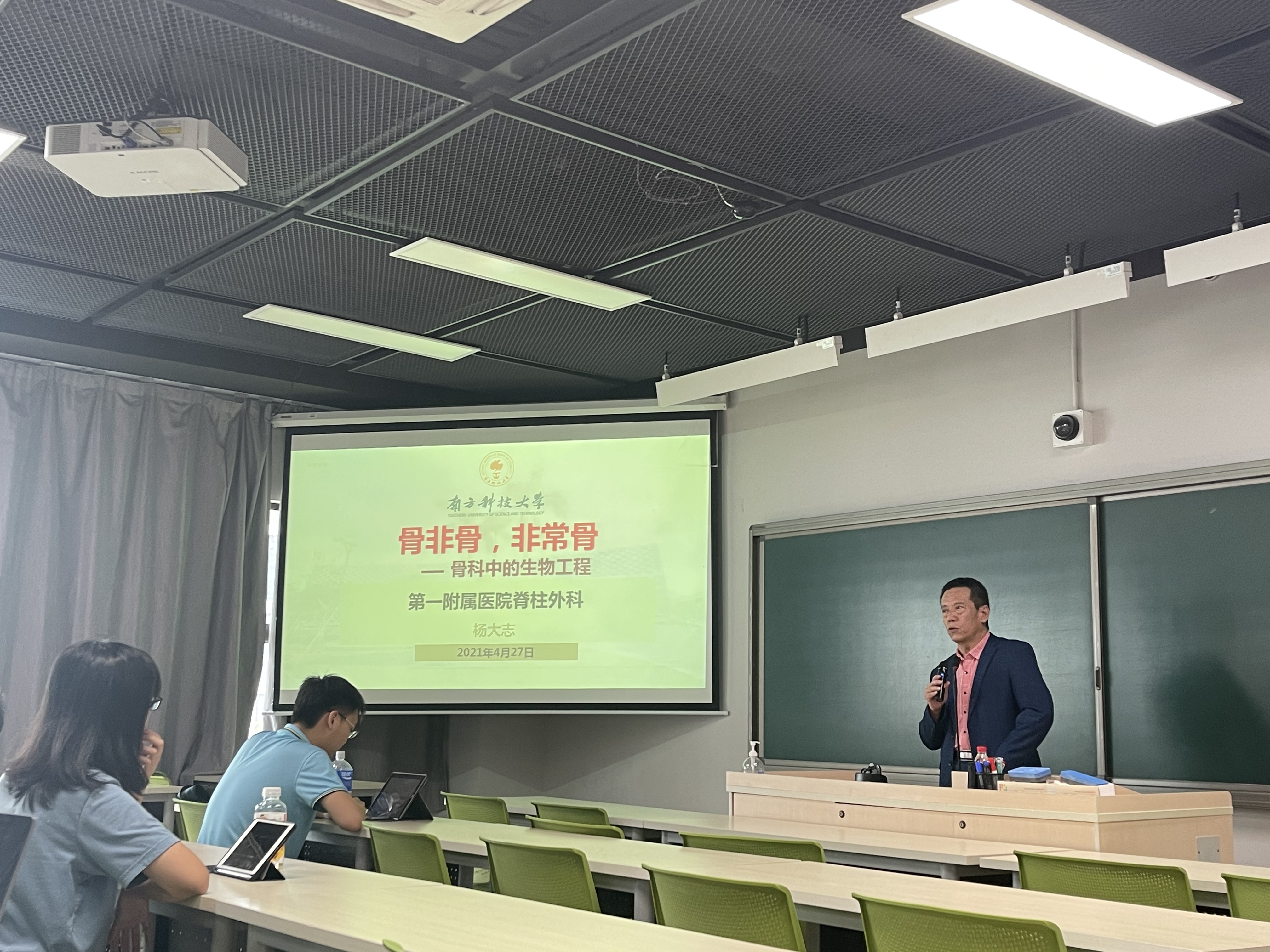 2021年4月27日下午,深圳市人民醫院脊柱外科楊大志主任受邀來訪臨床認知課程,并為眾師生帶來了一場題為“骨科中的生物工程”的講堂,講堂由我系唐斌副教授主持。