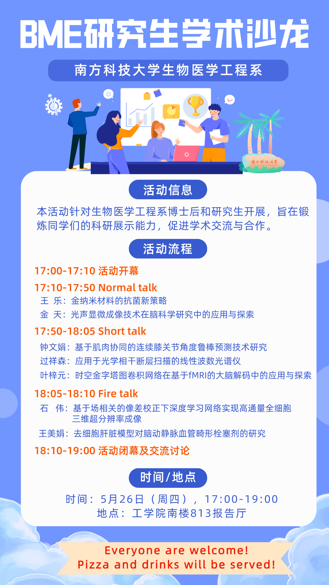 活動對象:生醫工系本科生、研究生及博士后進行學術分享,歡迎全校師生參與交流