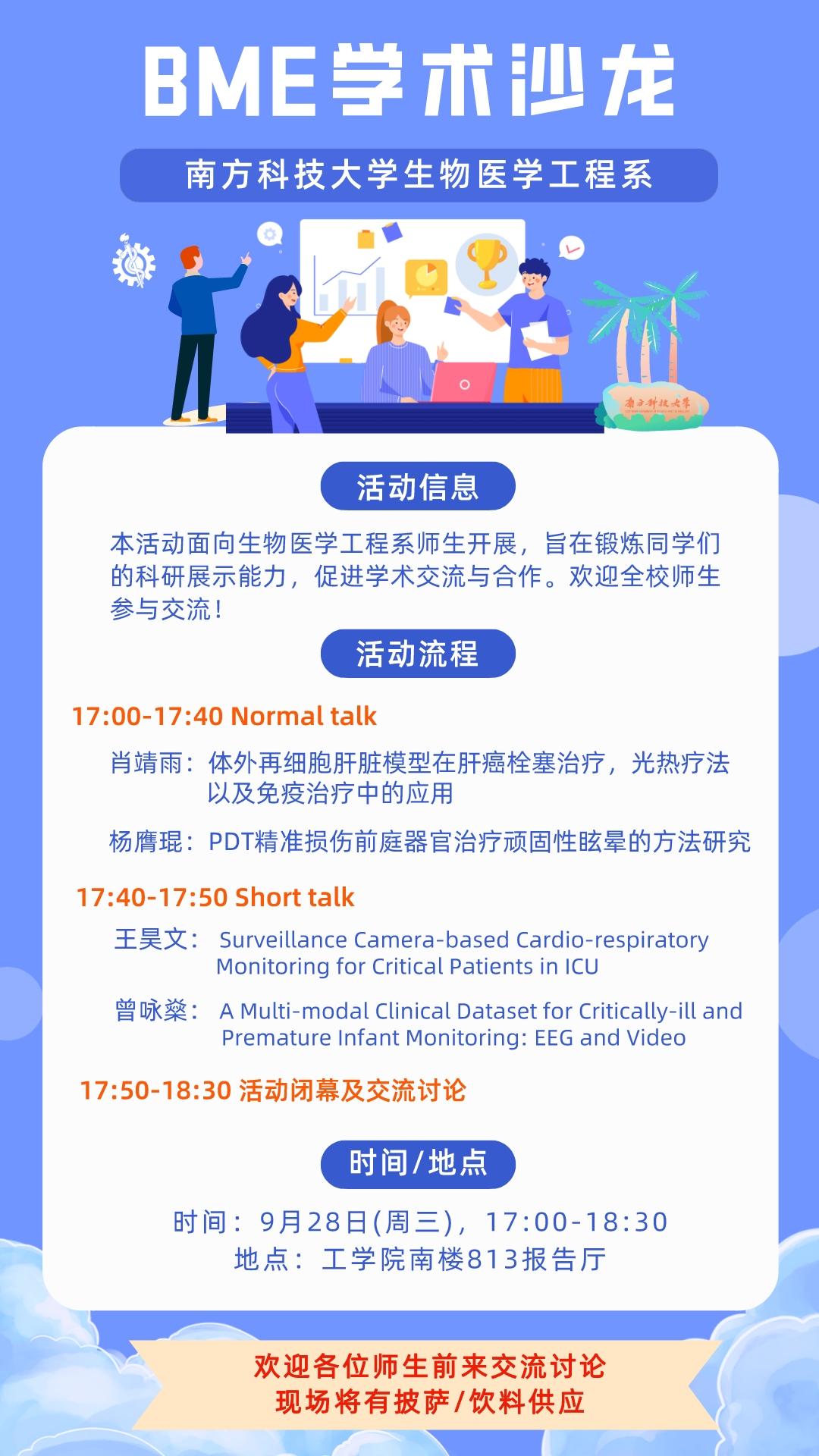 活動對象:生醫工系本科生、研究生及博士后進行學術分享,歡迎全校師生參與交流