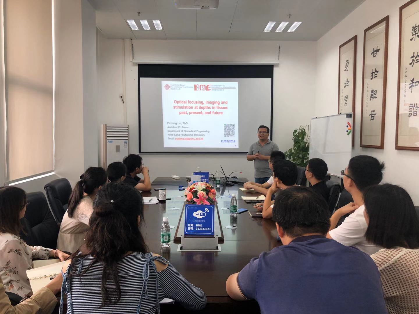 2019年11月2日,來自中香港理工大學的賴溥祥老師受我系奚磊老師邀請,在臺州樓324開展了題為“Optical focusing, imaging and stimulation at depths in tissue”的學術報告。