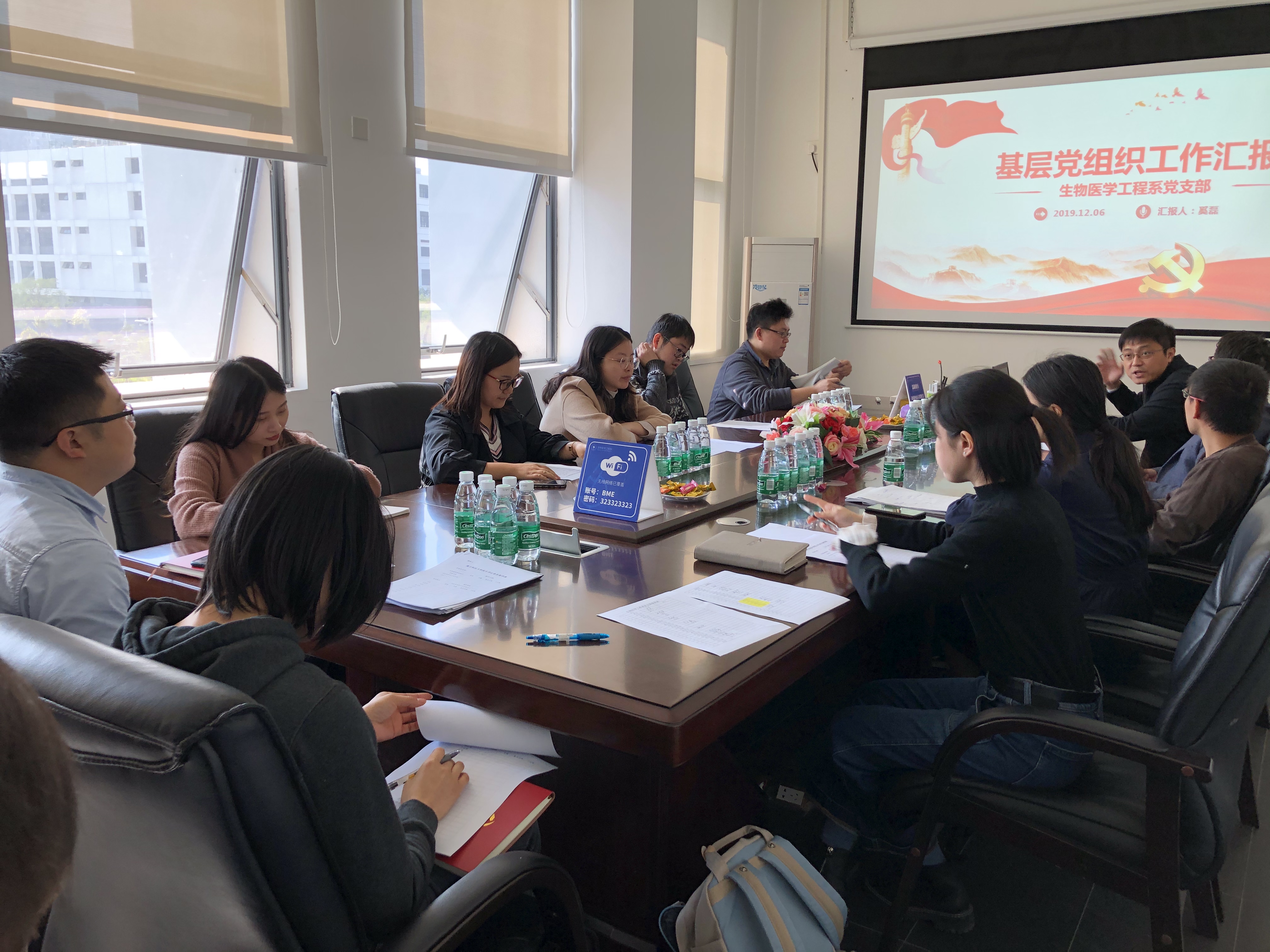 ? ? ? ?12月6日中午12:30,生物醫學工程系黨支部在臺州樓324會議室召開組織生活會與黨員民主評議會,黨支部書記奚磊主持會議,支部全體黨員、積極分子、流動黨員劉泉影、李依明以及黨外人士參加會議。