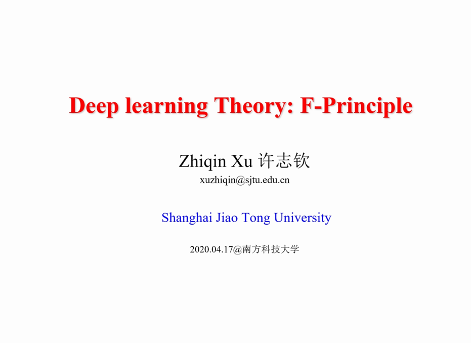 ? ? ? ?受南方科技大學生物醫學工程系劉泉影博士邀請,來自上海交通大學自然科學研究院的許志欽博士(https://ins.sjtu.edu.cn/people/xuzhiqin/)于騰訊會議平臺在線深入淺出的講解了深度學習(Deep Learning)的頻率原則 (Frequency Principle, F-Principle)理論,并利用實驗與數學理論結合的方式,闡明了深度神經網絡更適用于低頻情況(“DNNs prefer low frequency”)這一核心思想。