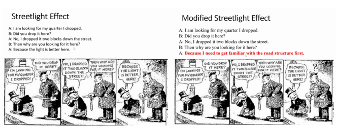 ? ? ? ?然而,深度學習理論在實際應用過程中也可能出現的問題。許博士用輕松幽默的漫畫方式(如圖2)說明在某些情況下DNN可能并沒有全面考察真實問題,只是在能“做事的地方”嘗試解決問題。