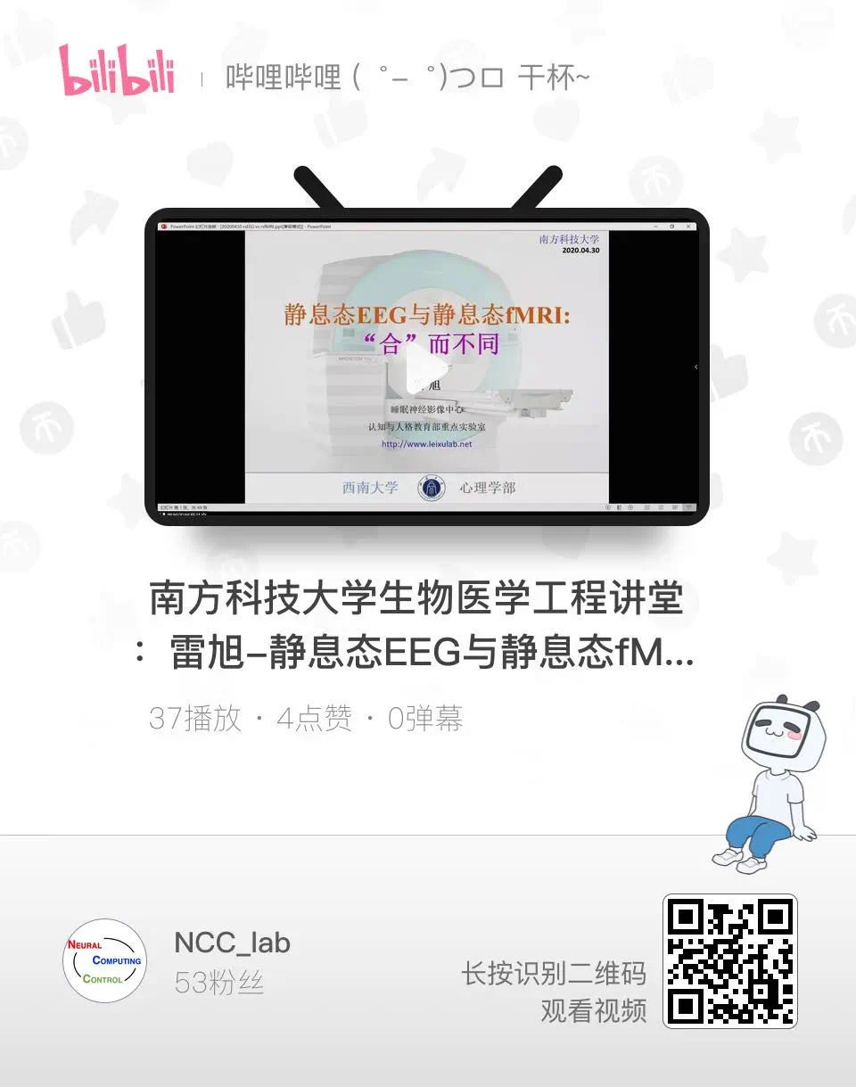 ? ? ? ?受南方科技大學生物醫學工程系劉泉影助理教授邀請,來自西南大學心理學院的雷旭教授(www.leixulab.net)于騰訊會議平臺在線講解了靜息態研究中EEG(electroencephalogram,腦電圖)和fMRI(functional magnetic resonance imaging,功能磁共振成像)各自的特點,并提出了能夠結合兩者優勢的靜息態研究方向。