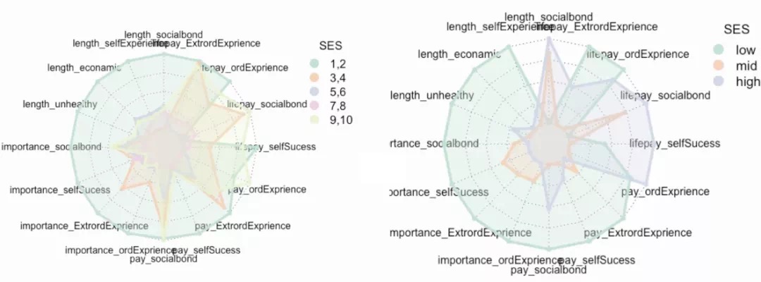 圖9?社會地位等級與消費、生命付出觀念雷達圖
