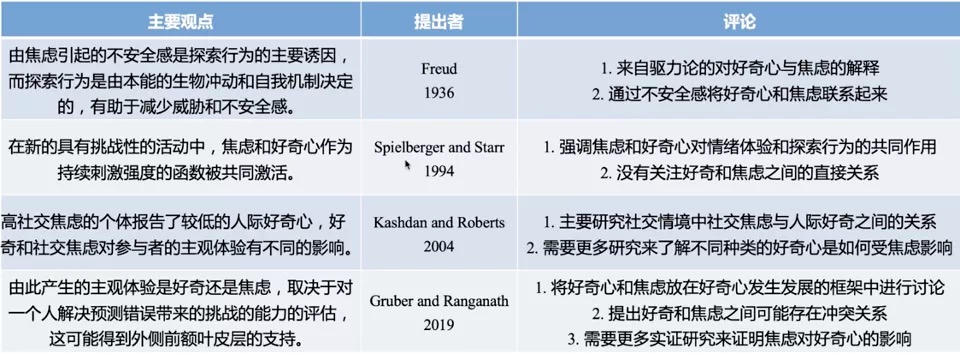 表1 心理學者的好奇心研究觀點