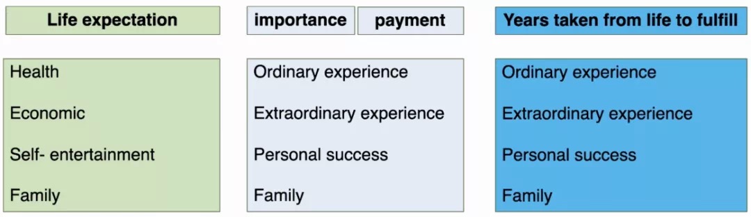 ? ? ? ?將自我評價的社會地位進行評級,分為低、中、高三個組。初步結果發現,社會經濟地位較低的組與社會經濟地位較高的組之間的生命體驗消費和生命付出觀念存在一定程度的互補。社會經濟地位低的人群不太愿意為社交關系和個人成功付出時間和生命。恰恰相反,社會經濟地位高的人會更愿意為自我成功付錢,家庭和伴侶關系付出時間。而中等程度的人群更加關注家庭和伴侶關系。對于社會地位高的人,相比現在的生活狀態不愿意得到更長的壽命。而如果一切理想,不同年齡段的人都希望能獲得更長的壽命,但是同比之下社會地位高的人對壽命長度的期望要仍較低。(這些結果尚為初步結果。因數據在進一步采集和分析,此結論可能有異于最終結論。)