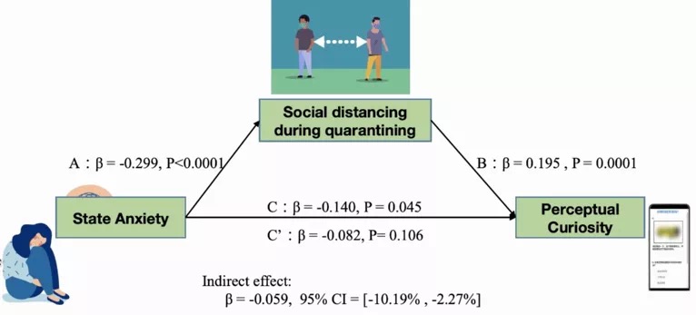 1.狀態焦慮對知覺好奇心有負性影響。這一關系也受到社交隔離的影響。