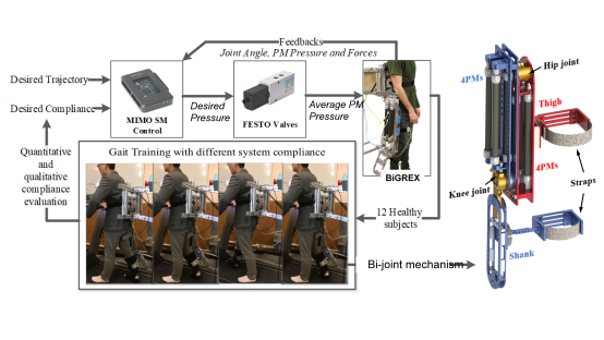 ? ? ? ?南方科技大學生物醫學工程系張明明助理教授研究團隊2019級博士研究生鐘斌在機器人工程領域旗艦期刊IEEE Transactions on Automation Science and Engineering(IF=5.293)上發表最新研究成果,該研究提出了一種基于滑模控制策略的下肢外骨骼關節位置及柔性同步控制算法,適用于人造氣動肌肉驅動的康復設備,實現了按需輔助的柔順控制提升了康復的效果。