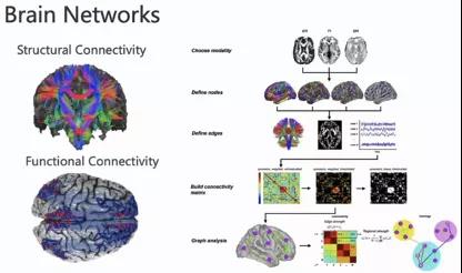? ? ? ?在構建腦網絡的過程中,首先對影像進行預處理,然后結合模板將大腦分成不同的區域。接著基于不同的構造邊(edge)的方式把不同區域作為節點(node),形成節點間的連接矩陣。對于DTI,使用的是構造性連接的數目、密度等等具體的指標。對于功能性腦網絡,可以直接從時間序列出發開展相關性分析,得到腦網絡圖(graph)。構造腦網絡圖后,進一步結合圖論(graph theory)的方法對圖的網絡性質進行研究。