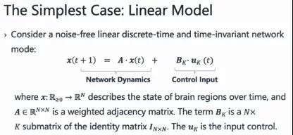 ? ? ? ?那么怎么類比于工程控制的過程,用相應的控制論方法探究大腦不同區域對整體動力學的影響呢?下面介紹了一個簡單的線性模型。