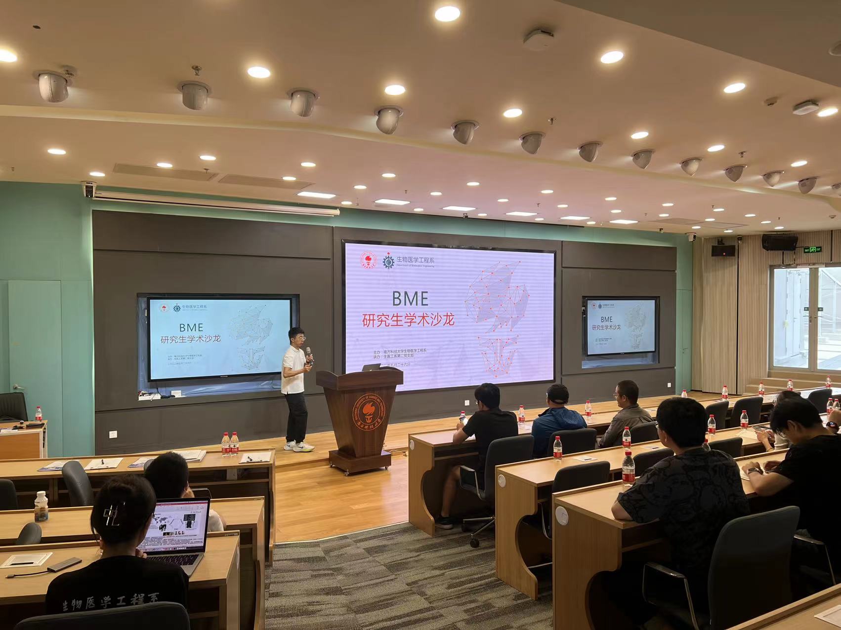 ? ? ? ?為促進我系研究生之間的學術交流,營造濃厚的學術氛圍,鍛煉我系研究生及博士后的科研展示能力,由生物醫學工程系主辦,生物醫學工程系第二黨支部承辦的“BME學術沙龍”正式拉開帷幕。系主任蔣興宇講席教授,黨總支書記、副系主任奚磊教授,第二黨支部書記唐建波助理教授,張博副教授、劉泉影助理教授參與活動。