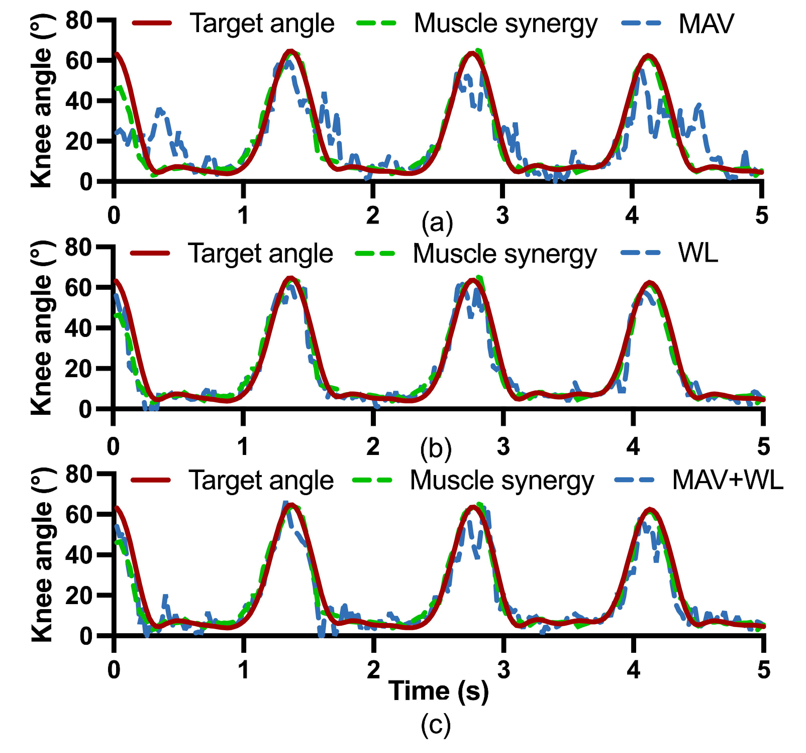 圖2. 步態模式膝關節角度預測結果