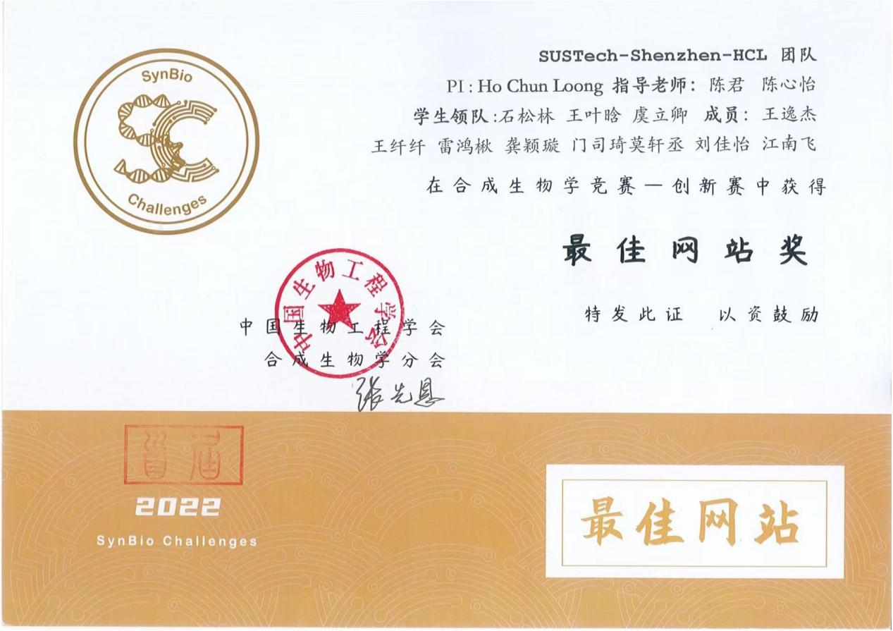? ? ? ?南方科技大學參賽團隊SUSTech_Shenzhen_HCL是由生物醫學工程系何俊龍老師擔任PI,陳君與陳心怡擔任指導老師,虞立卿、石松林、王葉晗三位同學擔任領隊,包括來自不同專業的龔穎璇、王纖纖、王逸杰、門司琦、雷鴻楸、劉佳怡、江南飛、莫軒丞等共14位師生組成的多學科交叉團隊。在本次大賽中,本團隊勇創佳績,獲評金獎與最佳網站獎。