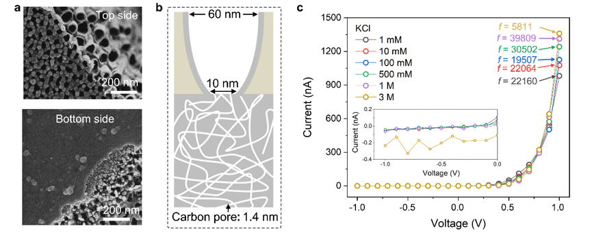圖1. 具有多尺度的碳基納米流體及離子二極管性質