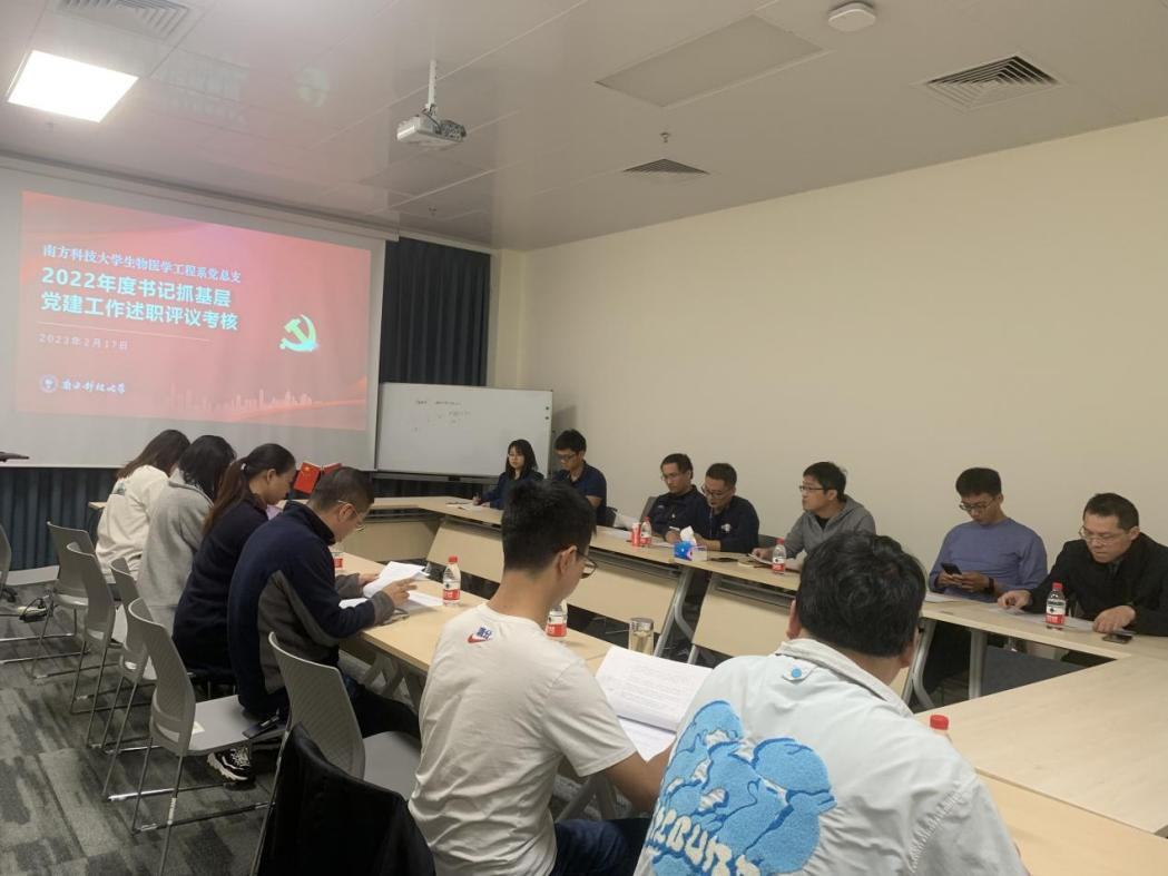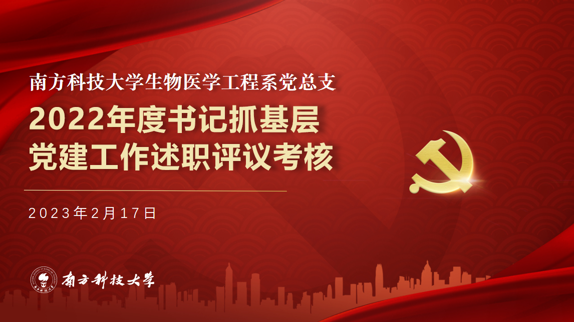 ? ? ? ?南方科技大學生物醫學工程系黨總支2022年度黨支部書記抓基層黨建工作述職評議考核會議于2月17日在工學院南樓722會議室成功召開。本次會議為黨總支委員擴大會議,旨在全面總結2022年度各項工作,肯定成績、檢視問題、積累經驗,推動基層黨建工作任務目標落實落地。生醫工系黨總支書記奚磊、生醫工系黨總支委員、生醫工系各黨支部書記參加會議,各黨支部委員列席會議,會議由生醫工系黨總支書記奚磊主持。