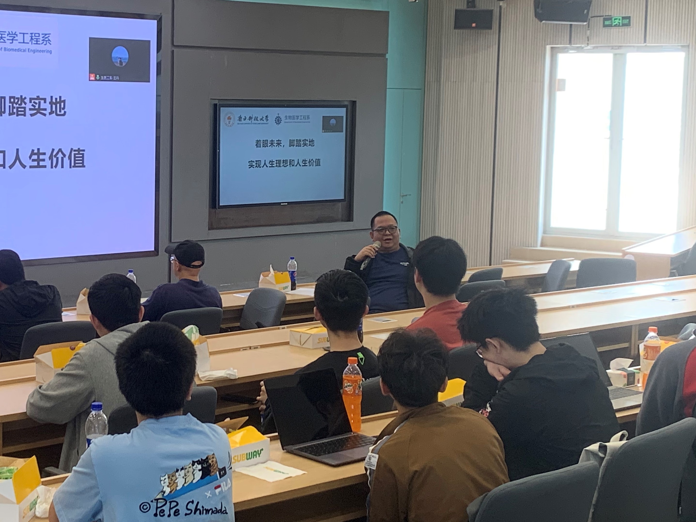 ? ? ? ?為迎接同學們重返校園,幫助同學們迅速調整至開學狀態并投入到全新的學習和生活當中,3月3日中午,來自生物醫學工程和智能醫學工程兩個專業的60名本科生在工學院南樓813報告廳召開了2023年春季學期第一次主題班會。生醫工系主任蔣興宇、黨總支書記奚磊、副系主任吳長鋒、班主任唐斌老師共同參與了此次活動。