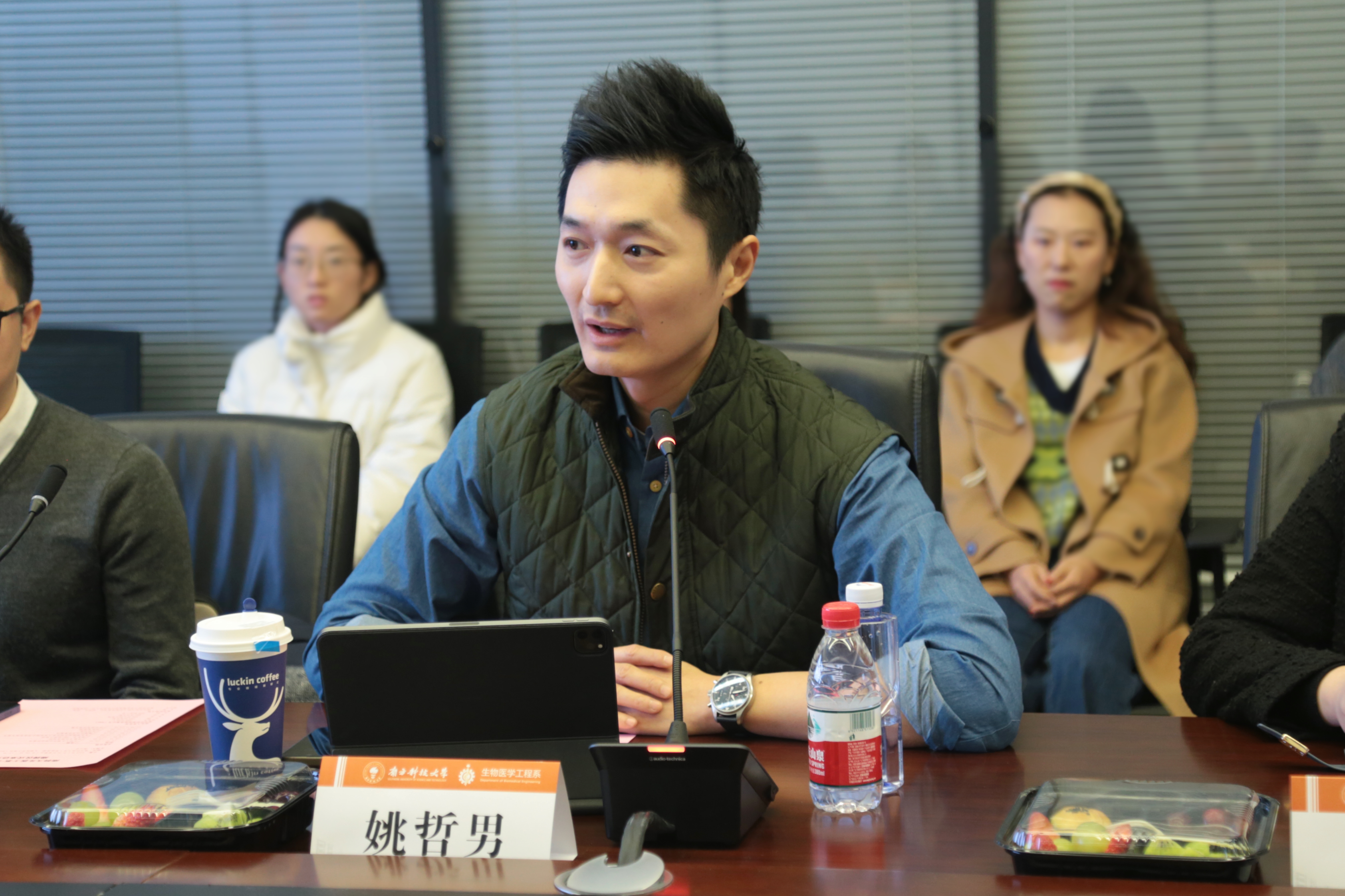 ? ? ? ?隨后,聯合實驗室負責人吳長鋒進一步介紹了生醫工系及光學分?影像實驗室的科研進展。他表示,此次共建將依托生醫工系科研平臺和HBN在化妝品行業的品牌優勢,聚焦有機半導體光學材料、光學分子與皮膚影像等研究方向,推進技術創新、資源共享及產業協同,進一步加速研究成果走出實驗室,促進科技創新與產業升級。