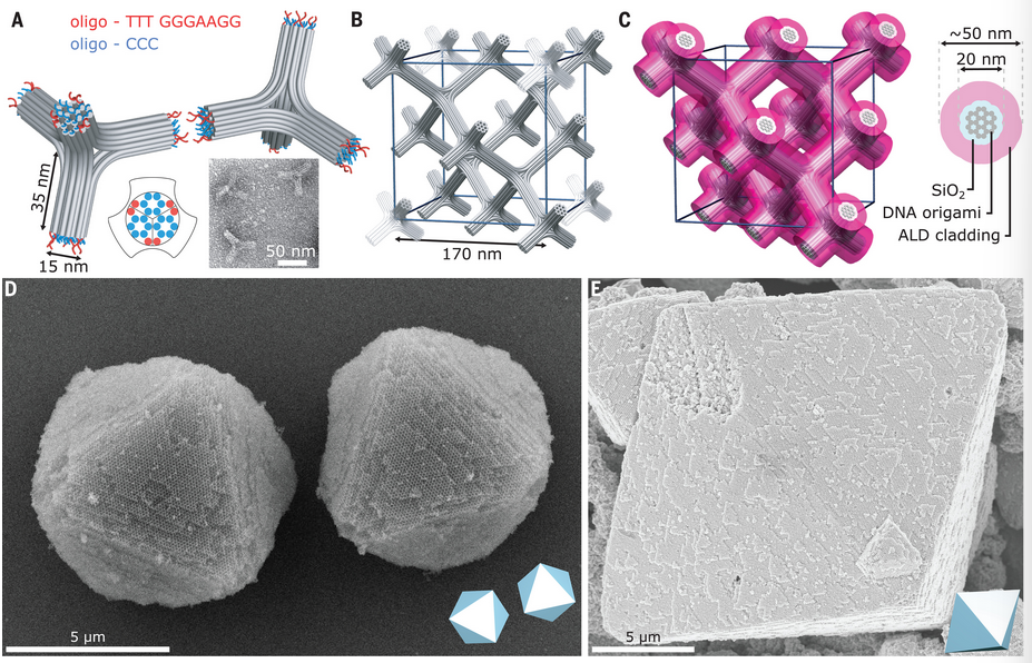 圖2 DNA折紙金剛石膠體晶體的分子設計和自組裝[2]