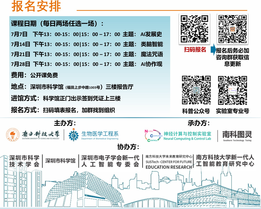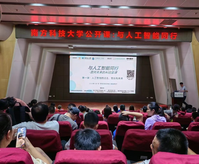 ? ? ? ?2024年7月7日上午,深圳市科學館內人頭攢動,氣氛熱烈。由南方科技大學生物醫學工程系計算神經與控制實驗室傾力打造的“與人工智能同行”科普系列公開課,在此盛大啟動。這場旨在啟迪青少年對人工智能興趣的活動,吸引了超過600位各界嘉賓、家長和小朋友們的積極參與,與會觀眾共同見證了一場科學與智慧的盛宴。