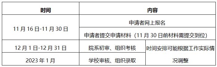 ? ? 2023級碩博連讀選拔工作時間安排如下: