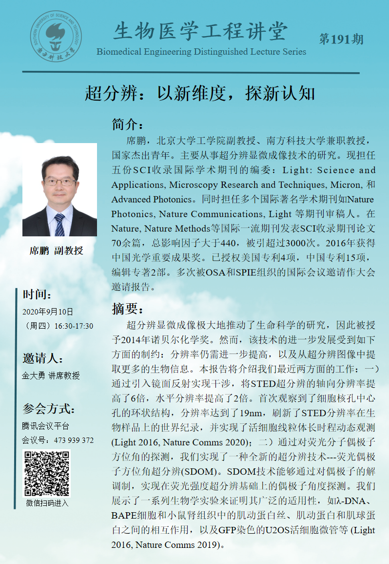南方科技大學生物醫學工程系研究生比亞迪獎學金推薦名單公示
