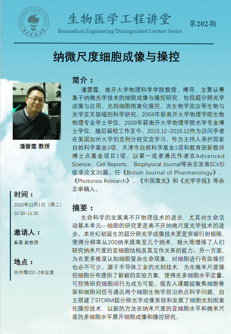 南方科技大學生物醫學工程系研究生比亞迪獎學金推薦名單公示