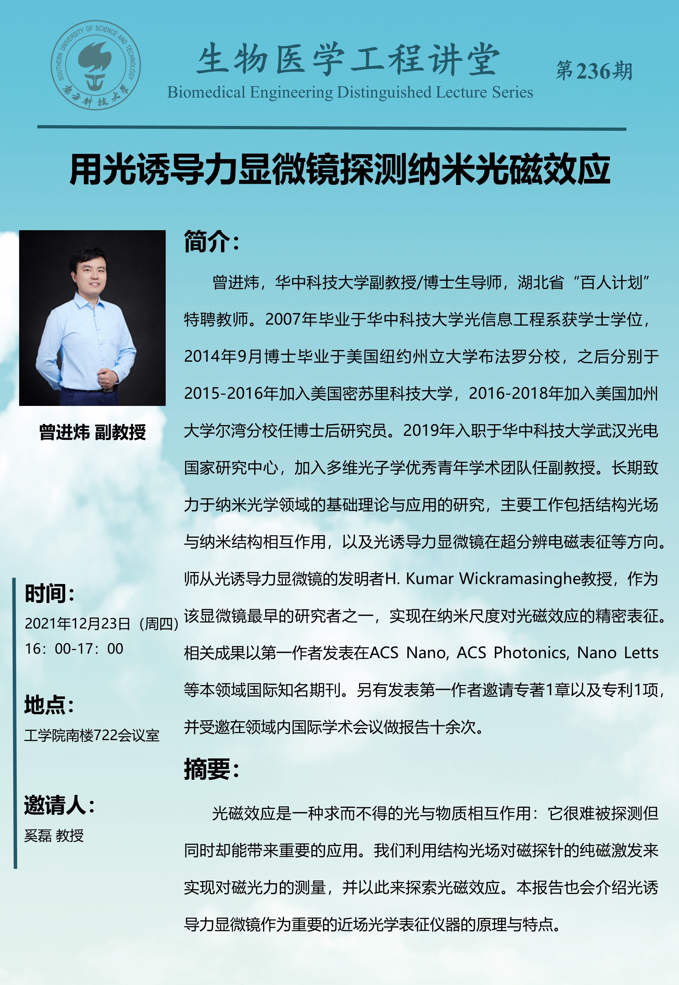 南方科技大學生物醫學工程系研究生比亞迪獎學金推薦名單公示