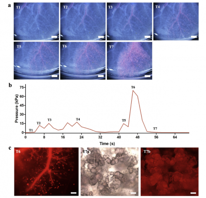The research team also examined the embolization kinetics of TACE treatment, and for the first time, evaluated the correlation between the embolization pressure and the penetration depth as well as the liver morphologies in the decellularized liver model (Figure 3). This model enables the monitoring of the spatiotemporal location of embolic agents. The finding is critical for real-time analyses of the effectiveness of embolization formulations for TACE treatment.